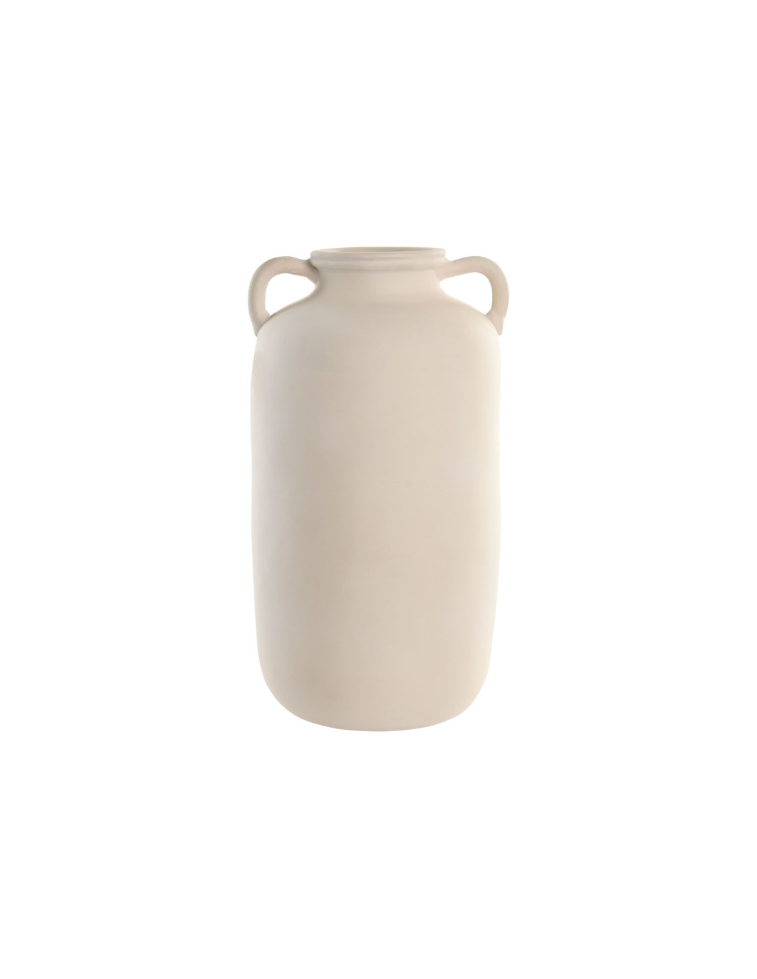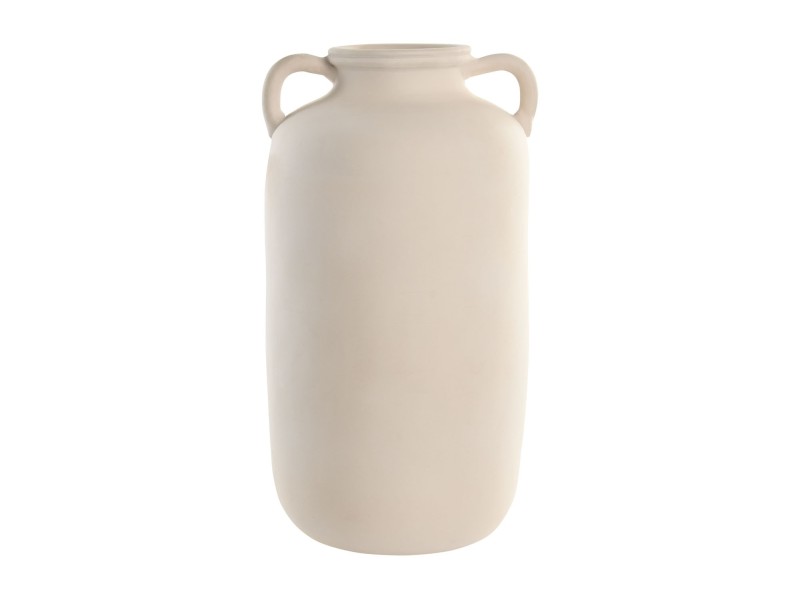 Jarrón realizado en terracota de color crudo, con asas. Realización artesanal. Medida: 27x25x50 cm.
