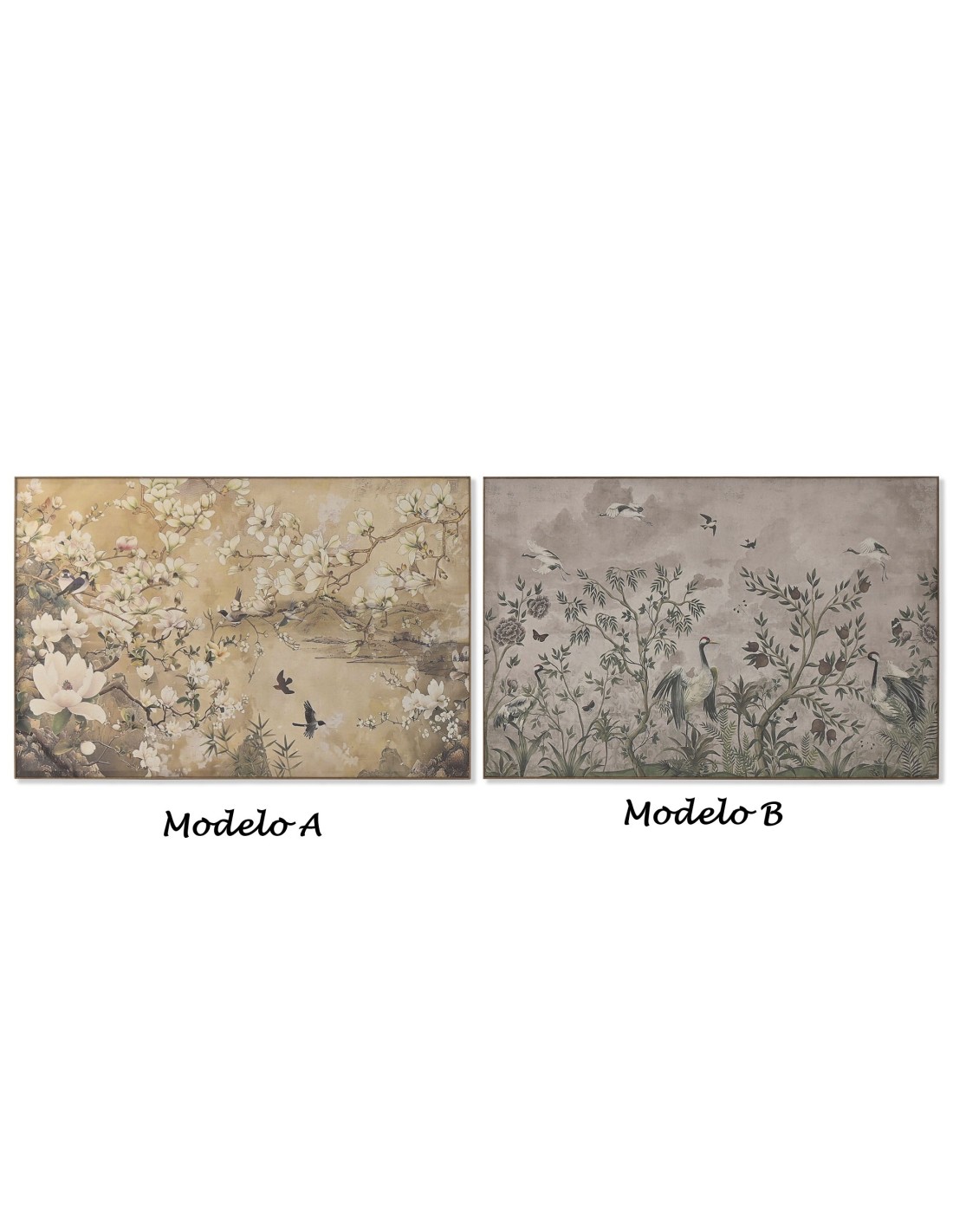 Cuadro realizado en lino enmarcado con abeto. Dos modelos disponibles. Medida: 120x3x80 cm