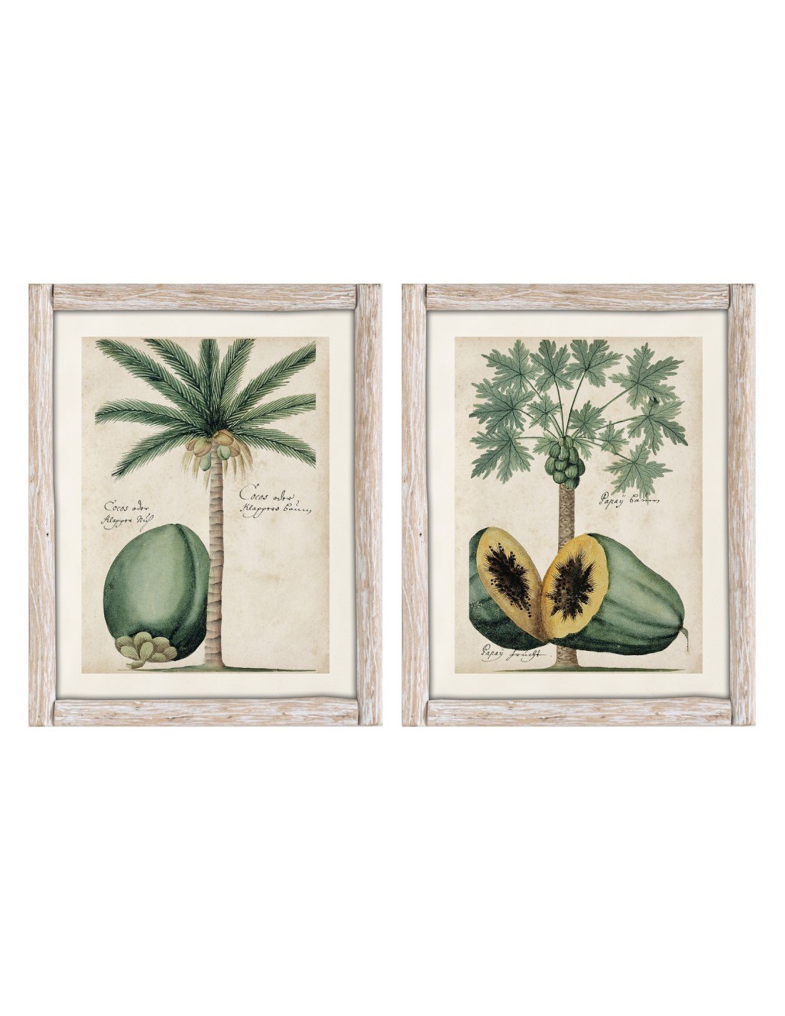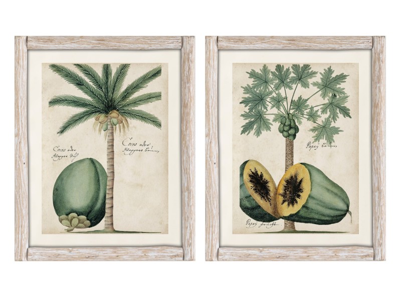 Cuadro enmarcado en madera de abeto con cristal. Lámina botánica de árboles frutales, en tonos verdes . Dos modelos disponibles. Medida: 40x3,5x50 cm