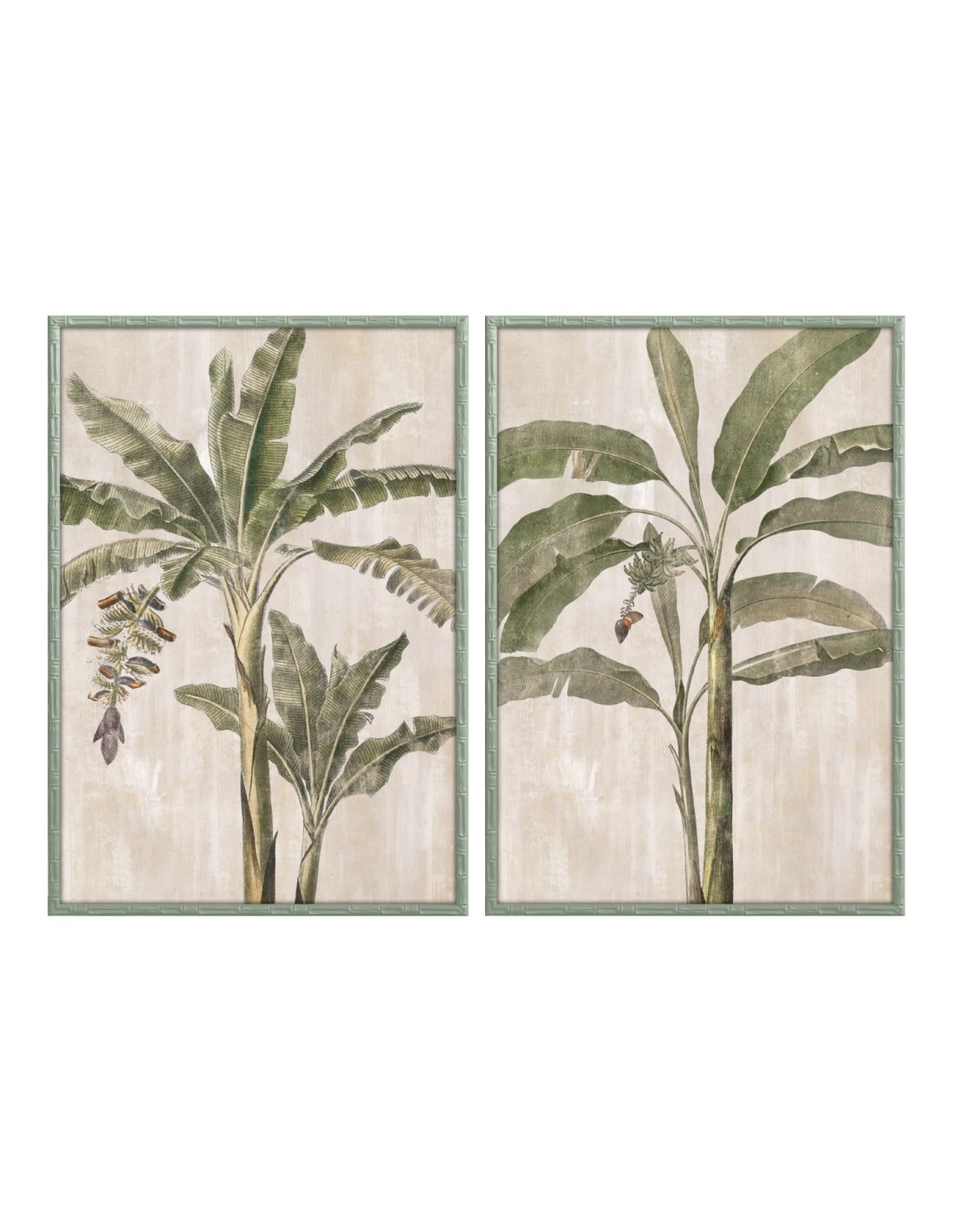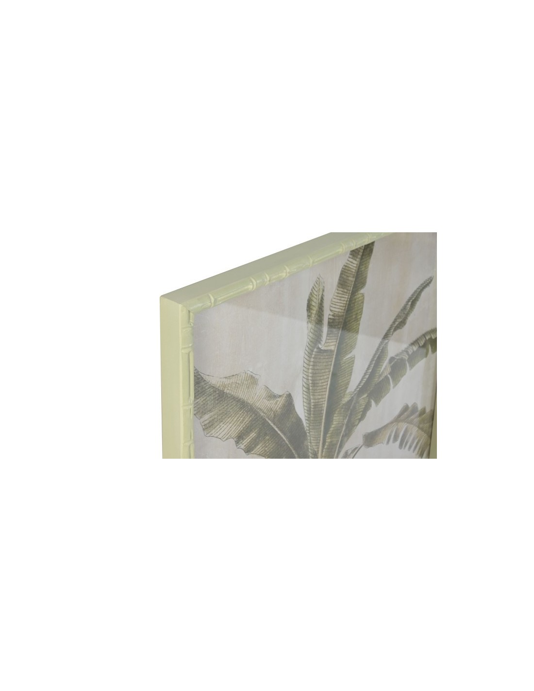 Cuadros enmarcados en madera de abeto, con motivos de palmeras verdes. Dos modelos disponibles. Medidas: 70x4x100 cm