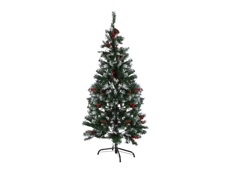 Árbol de navidad nevado con rusco y piñas naturales. Incluye 170 luces LED. Medida: 70x70x150 cm