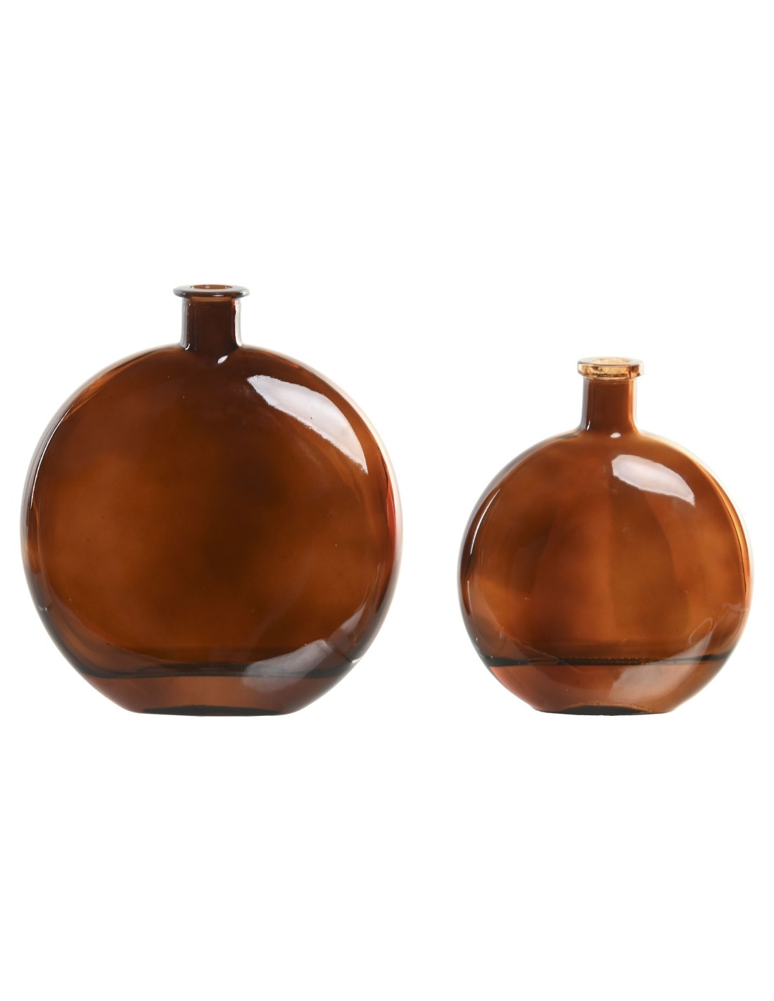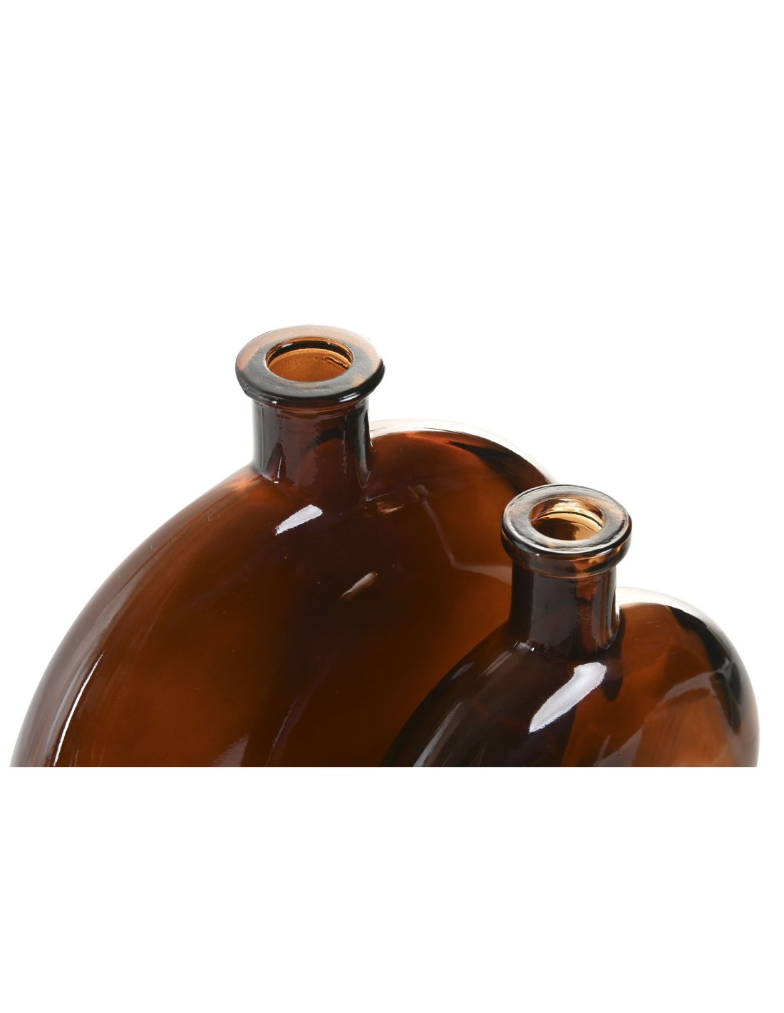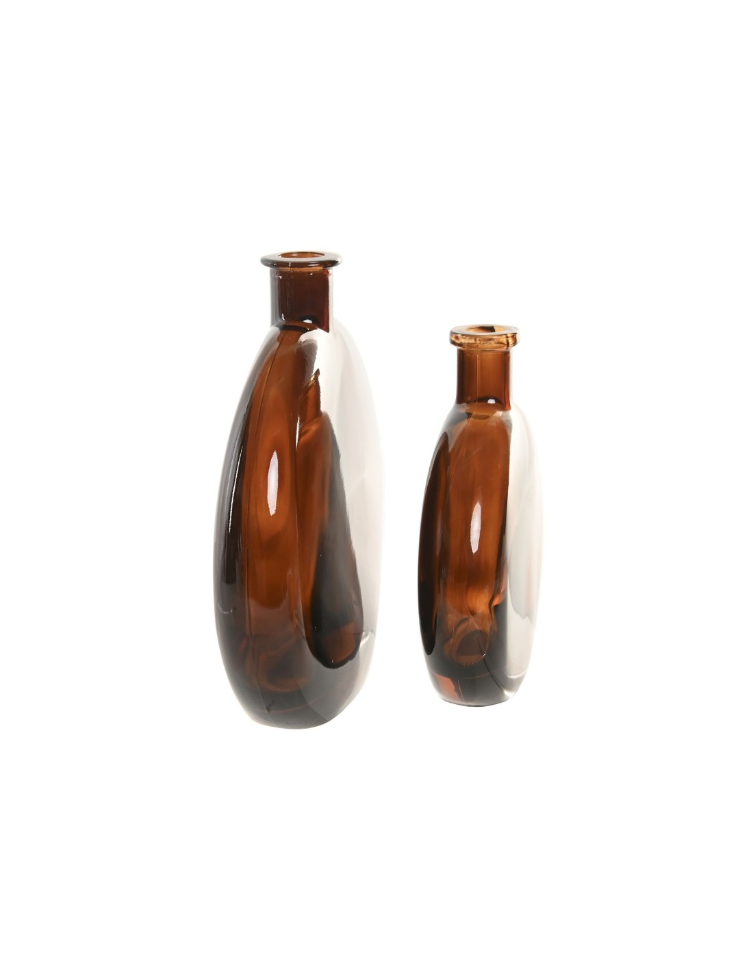 Juego de dos jarrones de sobremesa en cristal de color marrón. Medida: 12x3,5x15 cm y 16,5x5x18,5 cm