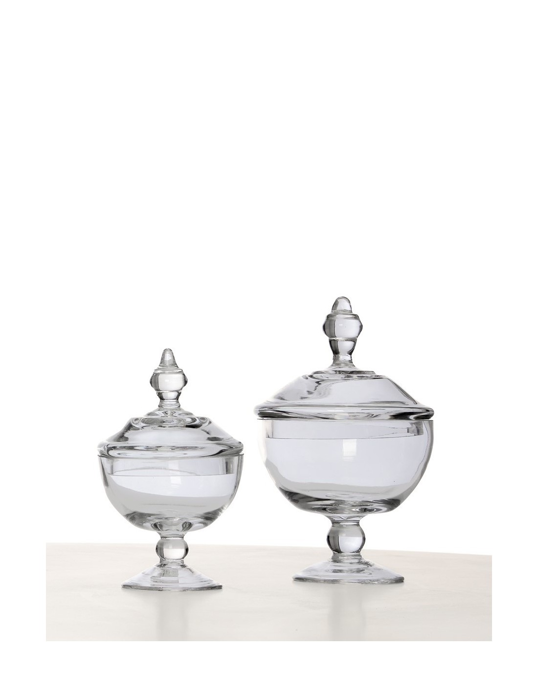 Bomboneras realizadas en cristal transparente. Dos medidas disponibles. A: 13dx20 cm. B: 15dx26 cm.