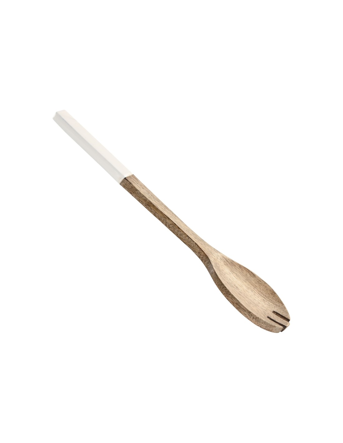 Cubiertos para ensalada en madera de mango con puños lacados en blanco. Medida: 31x6,5x1,5 cm