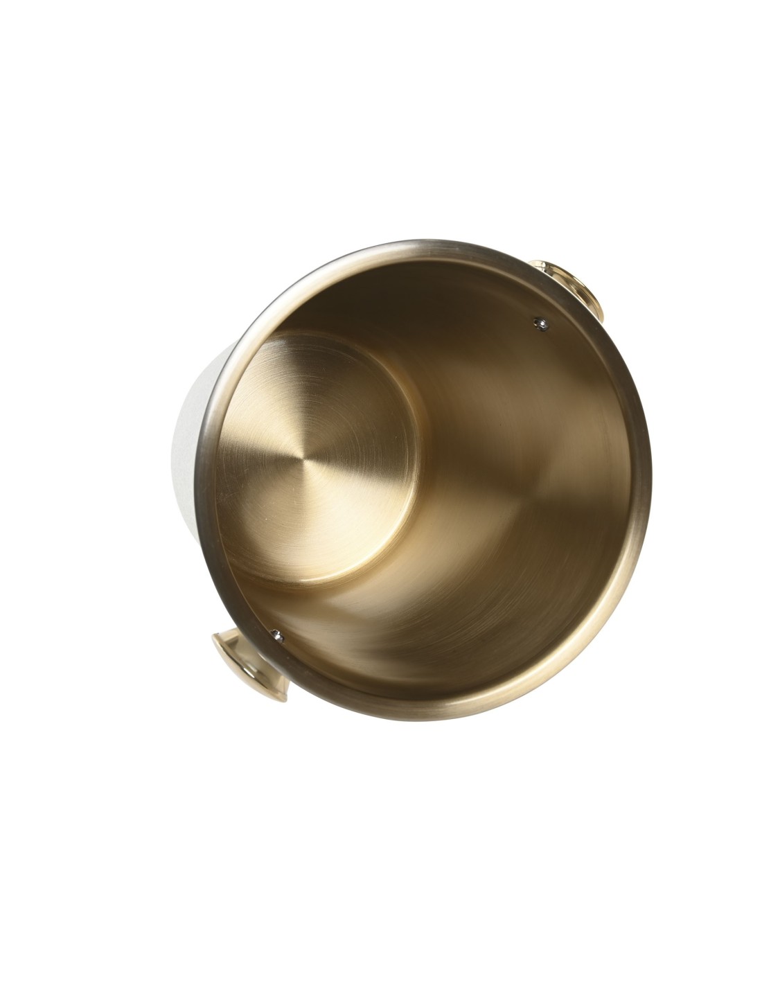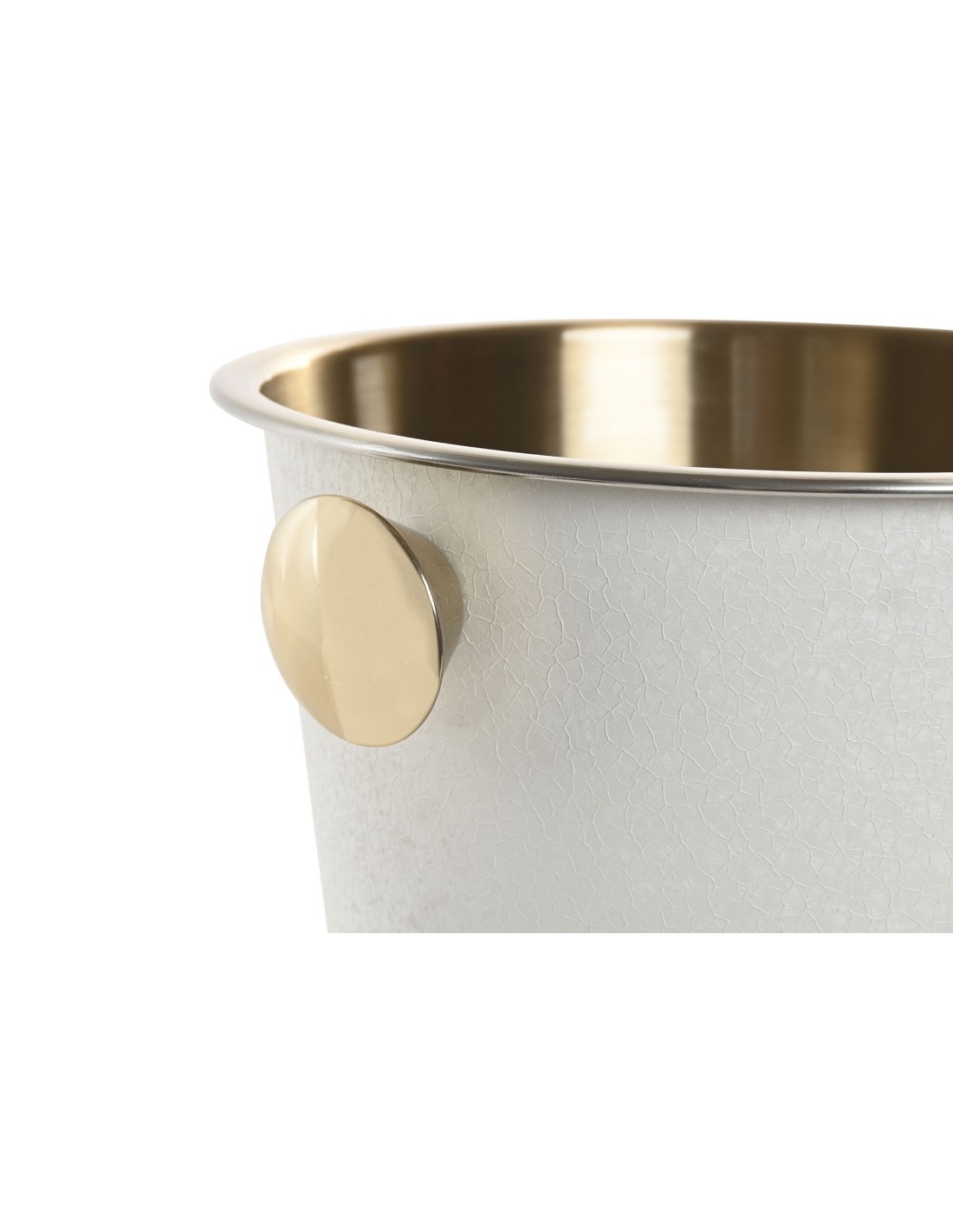 Champanera en acero inoxidable, interior dorado, exterior blanco rugoso. Medida: 24x24x22 cm