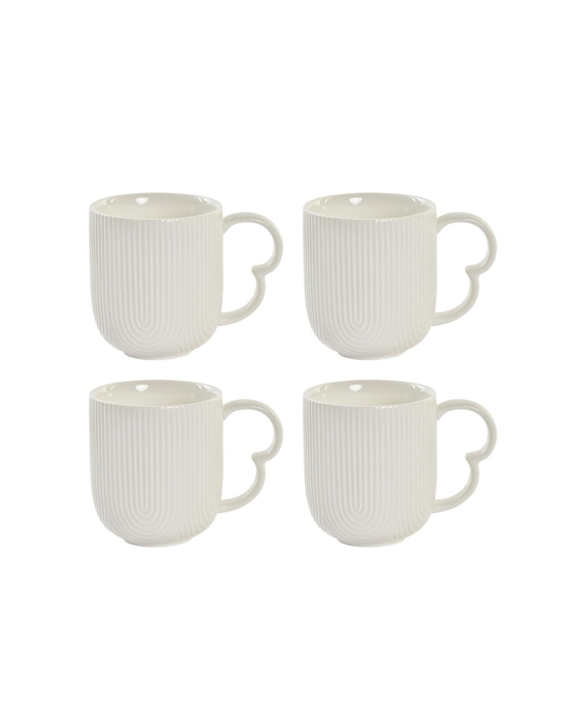 Juego de 4 tazas, tipo mug, de porcelana, con soporte en madera de bambú. Medida: 18x18x31 cm 350 ML