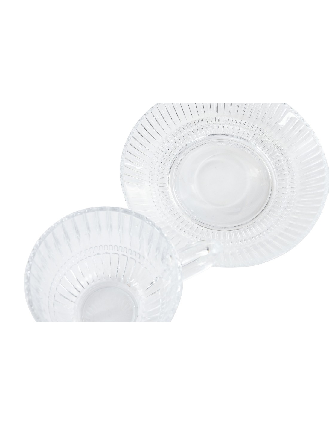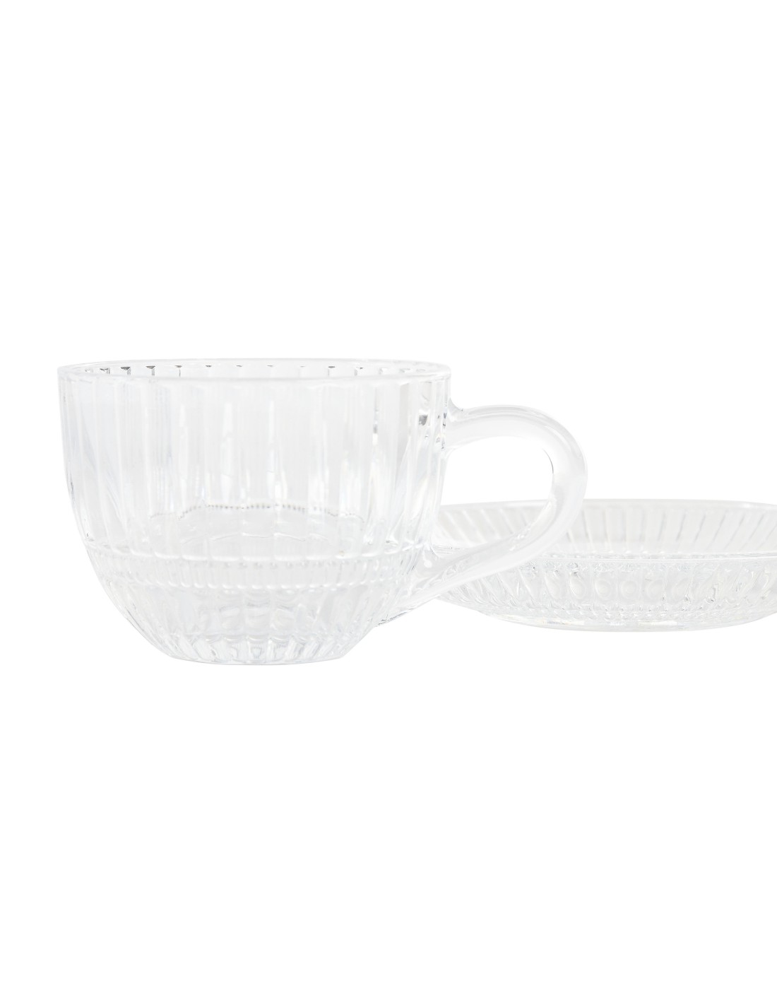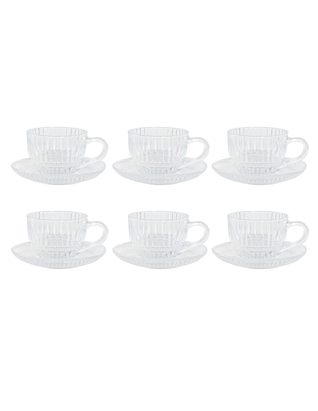 Juego de 6 tazas de cristal rayado con plato. 240 ML. Medida: 14x14x7,5 cm