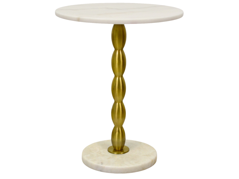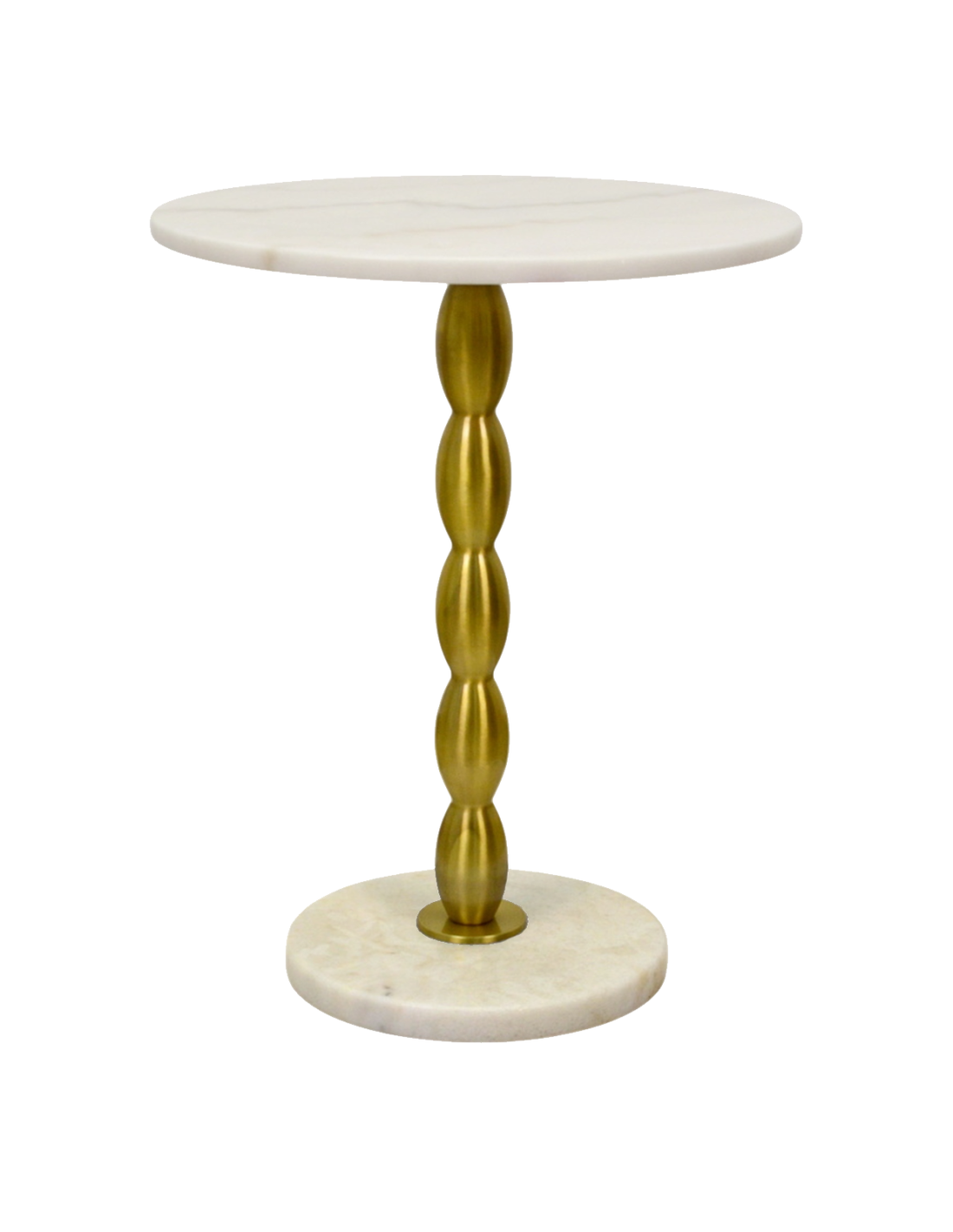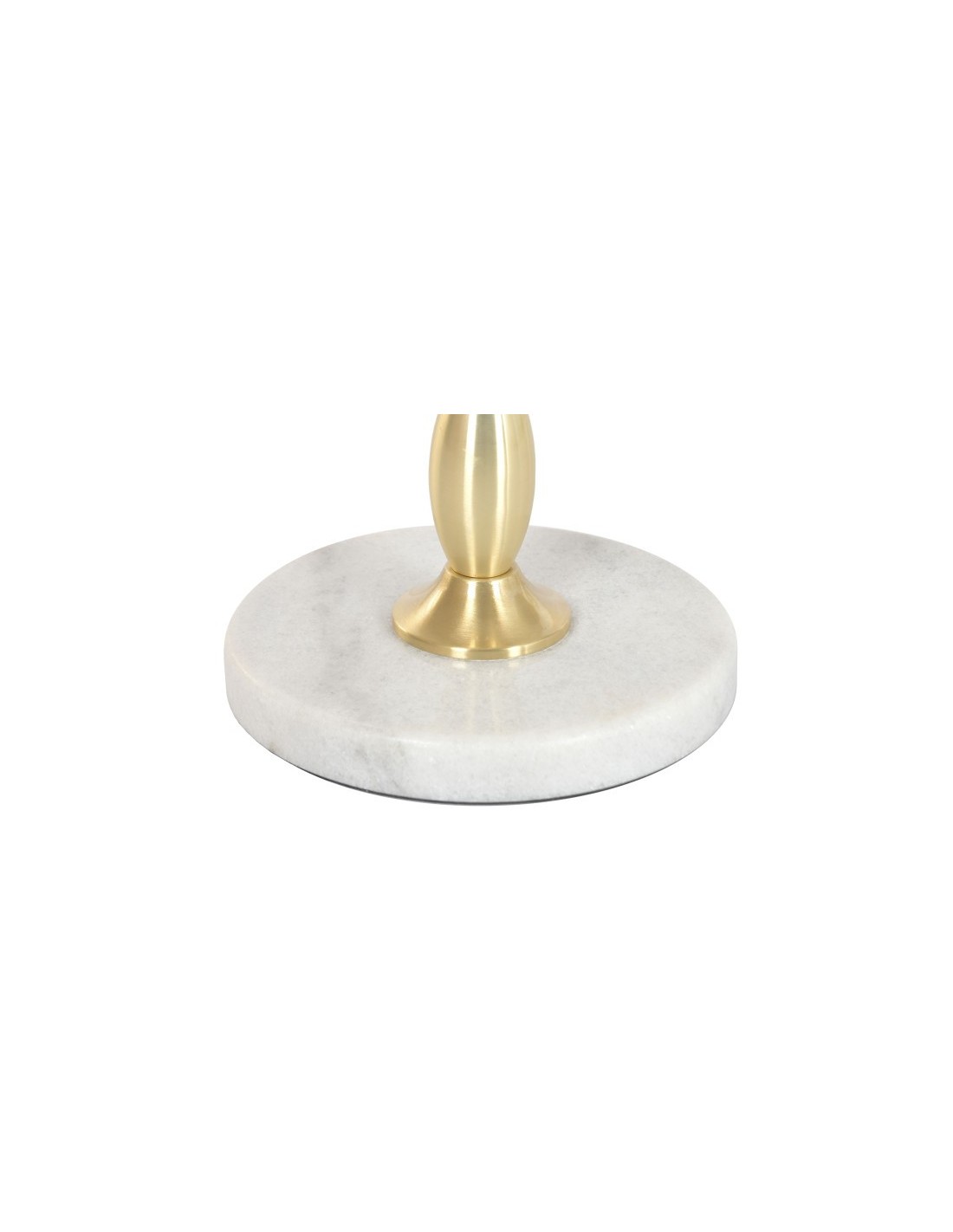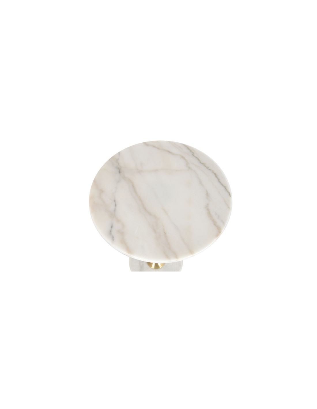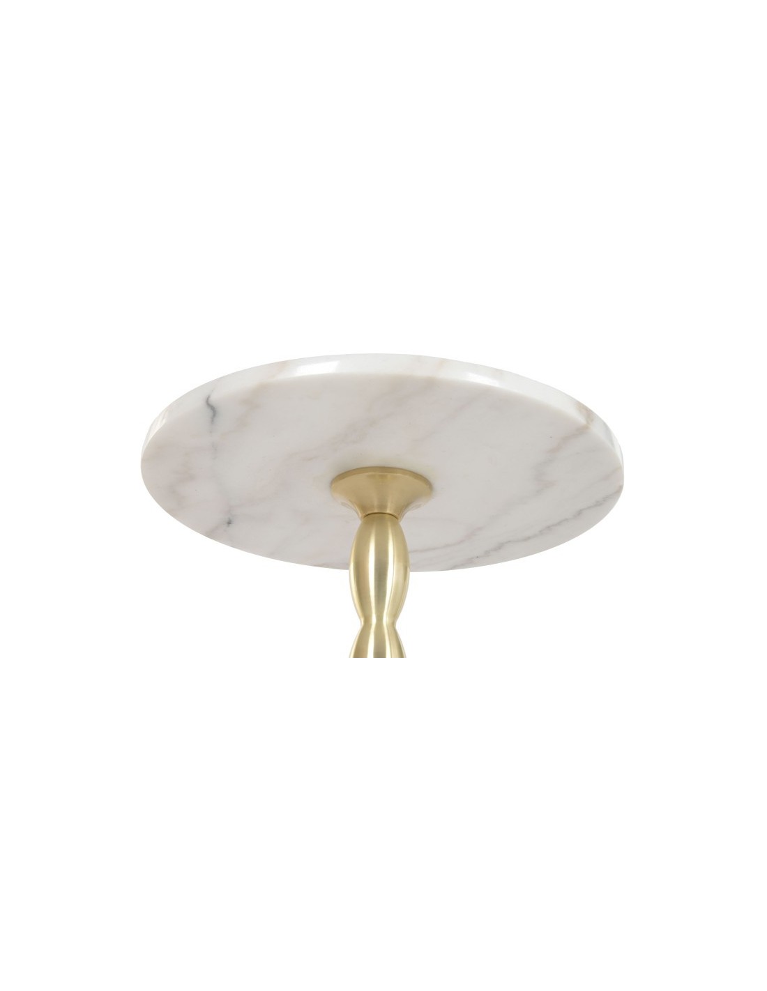 Mesita auxiliar realizada en mármol blanco con metal dorado. Medida: 41x41x57 cm