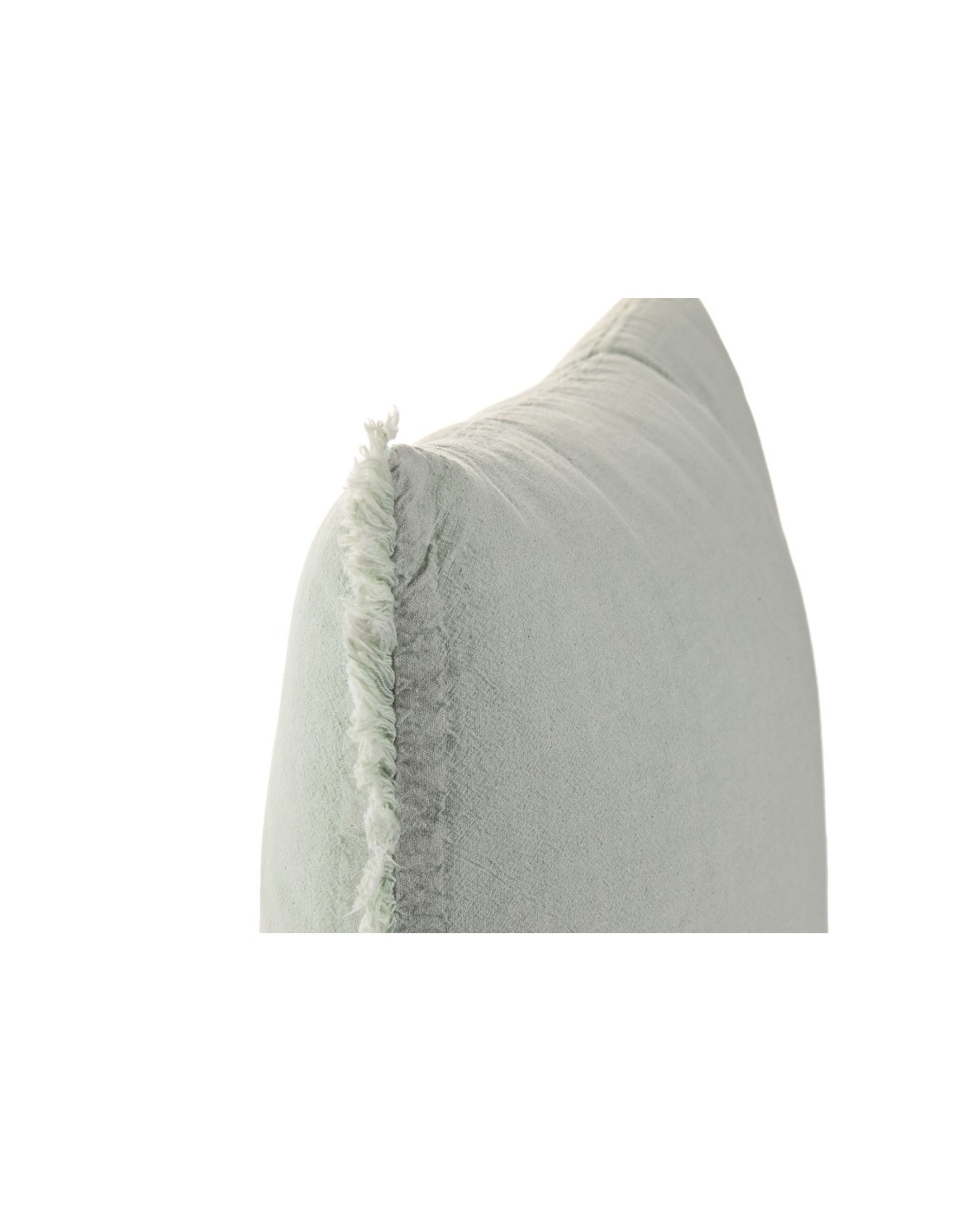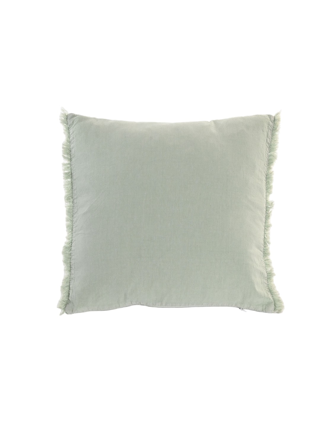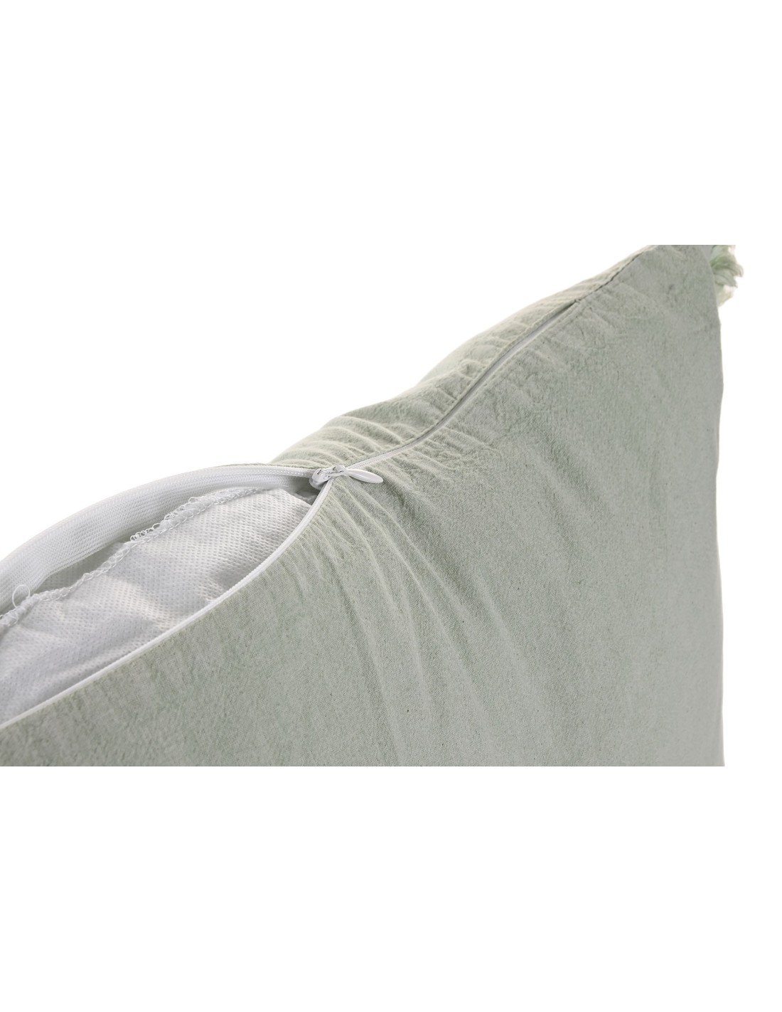 Cojín con relleno. Funda de algodón en color verde menta, con flecos en los extremos. Medida: 45x45 cm
