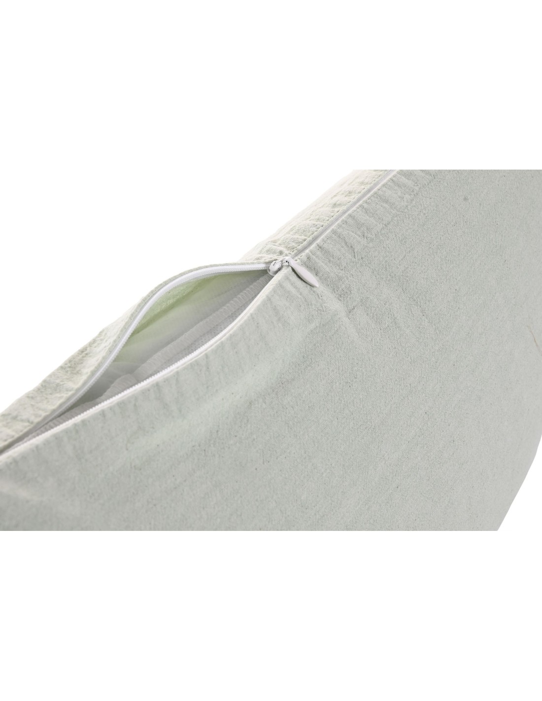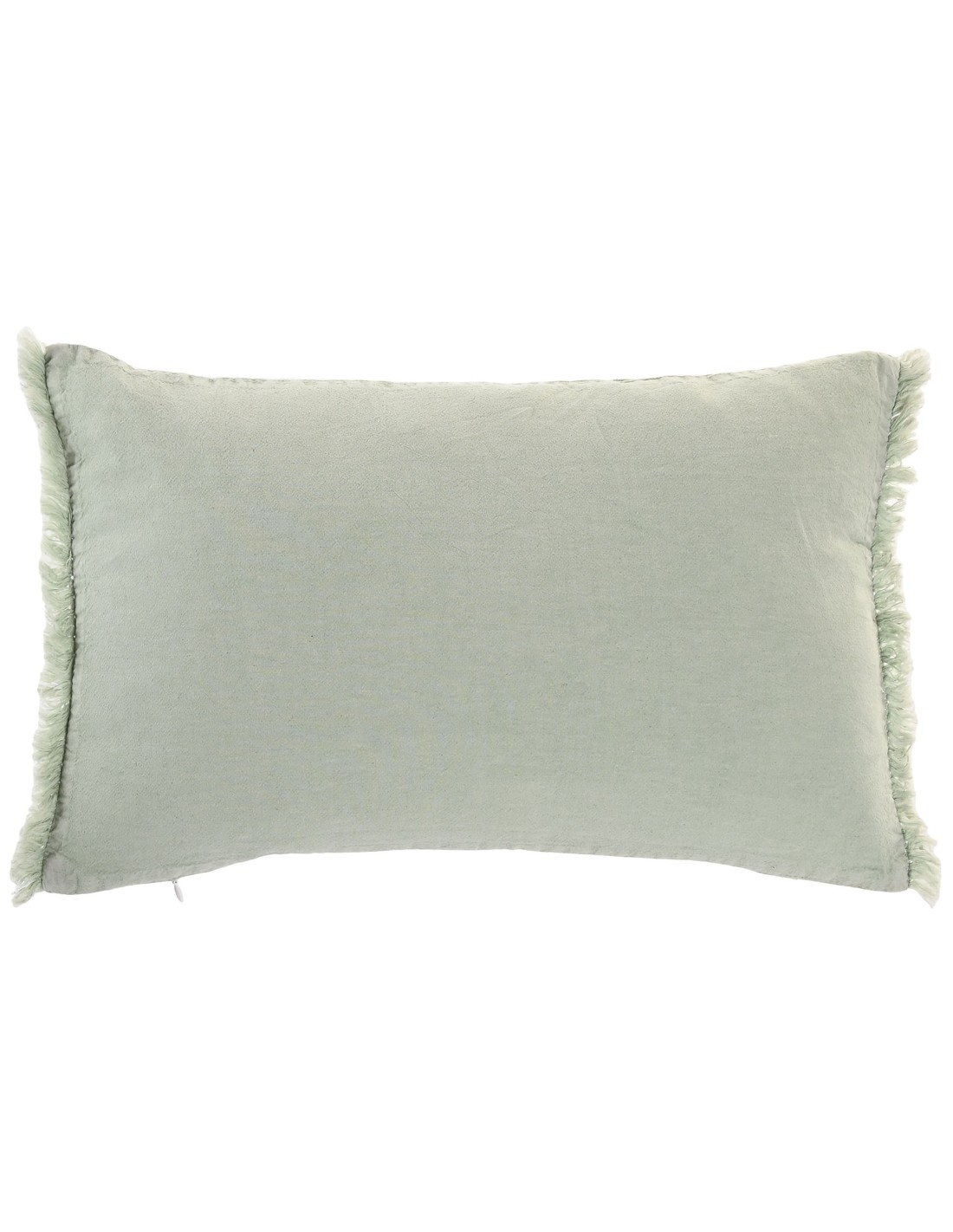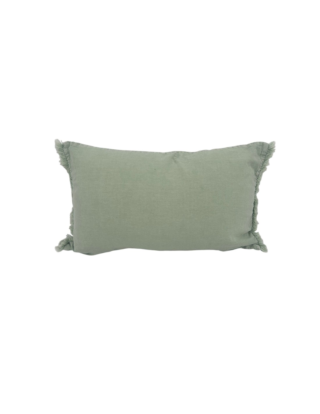 Cojín con relleno. Funda de algodón en color verde menta, con flecos en los extremos. Medida: 30x50 cm