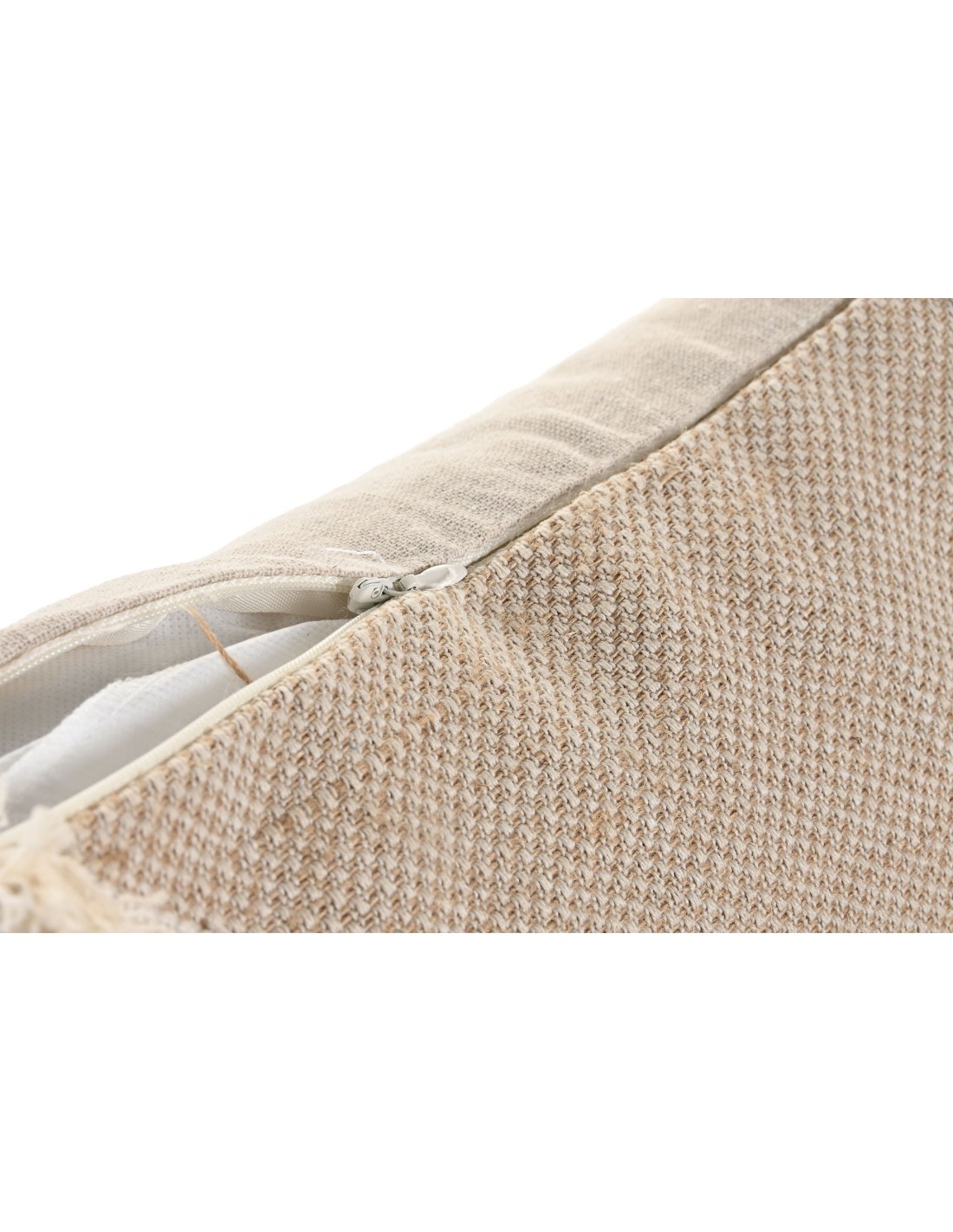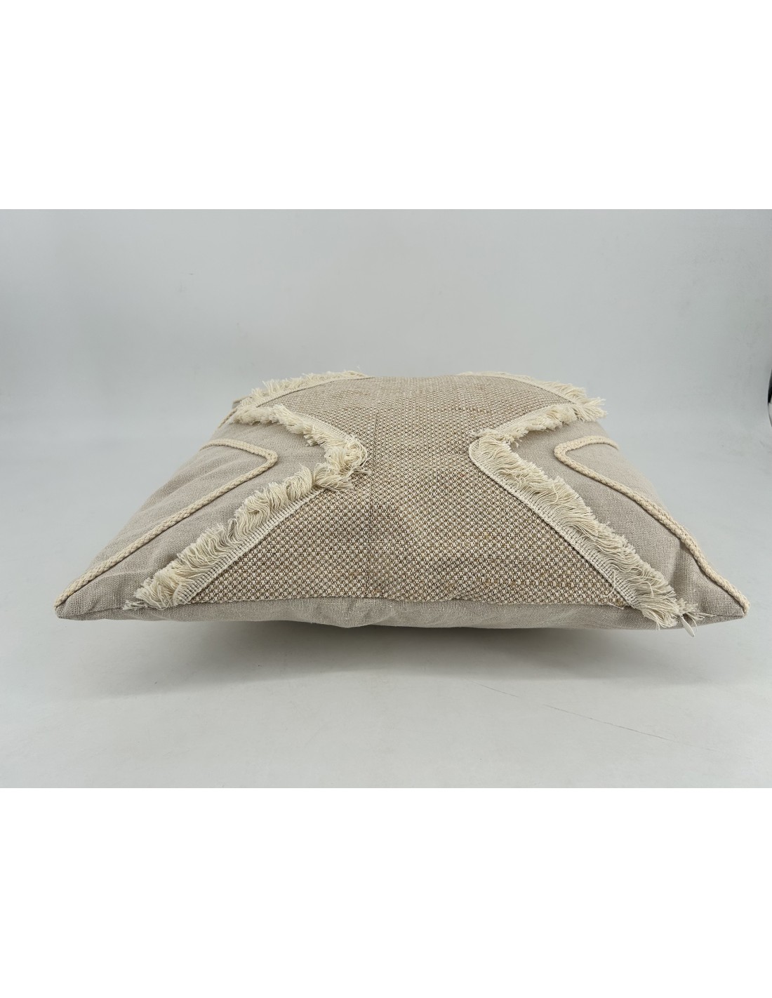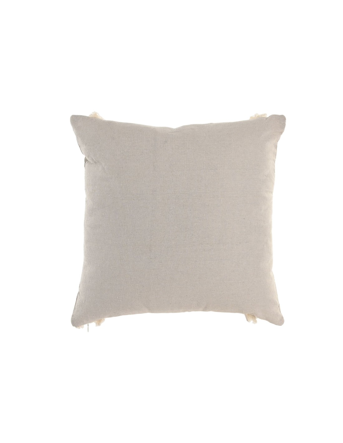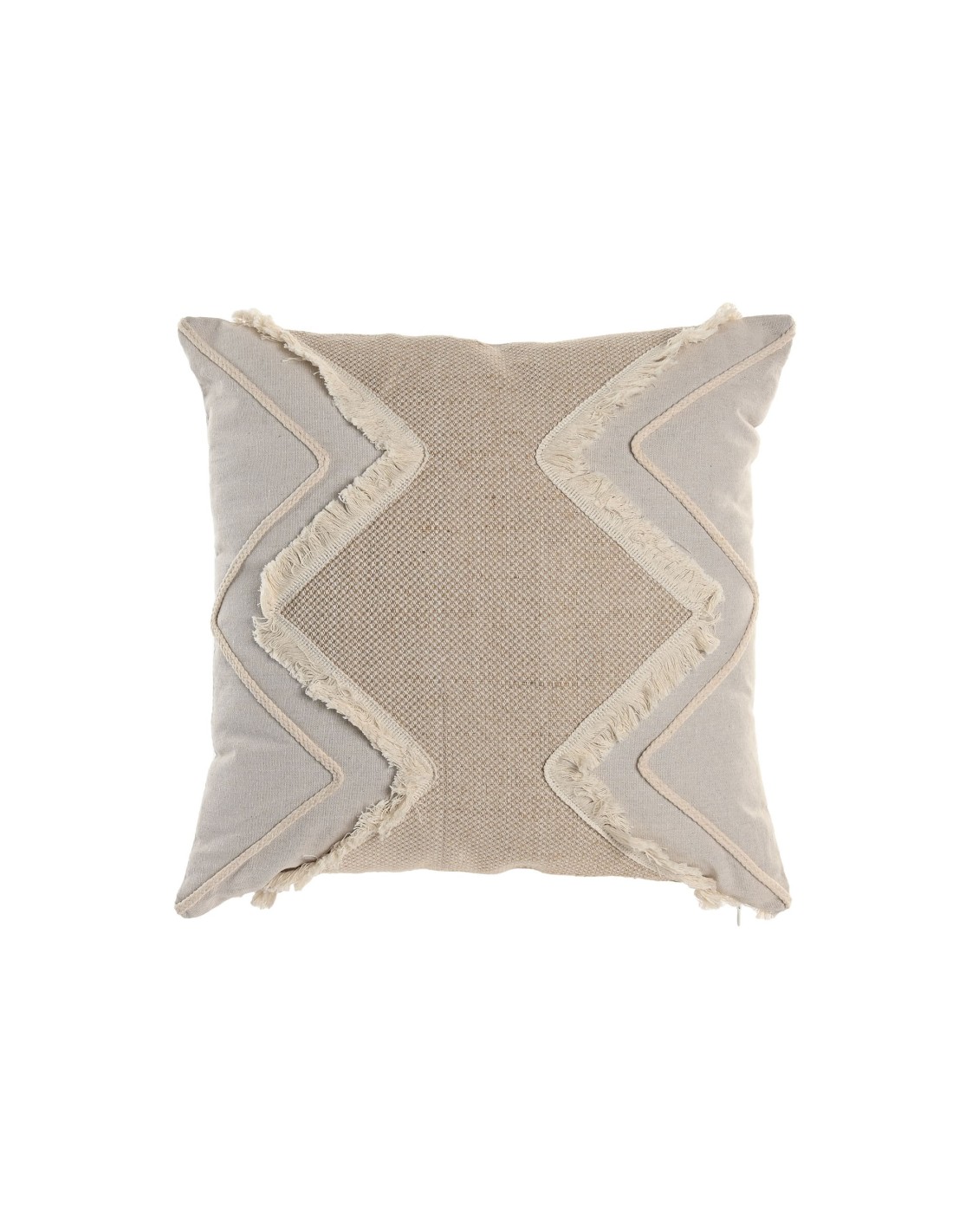 Cojín con relleno de 45x45. Tejido de algodón y yute con formas geométricas. En tonos beige y natural.